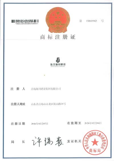 2016年5月16日,公司正式收到“泓久海川建設”商標注冊證書,這標志著海川集團沿用六十多年的標志正式成為商標,受國家法律保護,為公司進一步創(chuàng)建企業(yè)品牌、搶占市場先機、開拓埠外市場夯實了基礎。